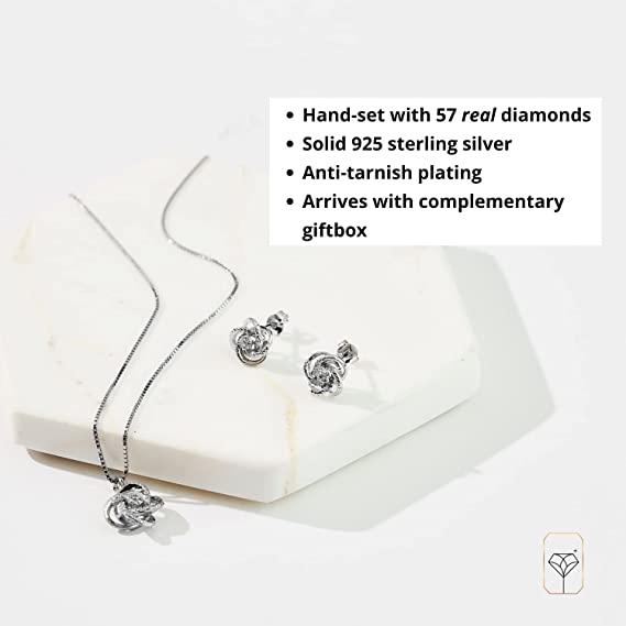 1/4 Carat Natural Diamond Love Knot Stud Earrings and Pendant Necklace for Women in 925 Sterling Silver (I2-I3, 0.25 cttw) Diamond Jewelry Set by MAX + STONE